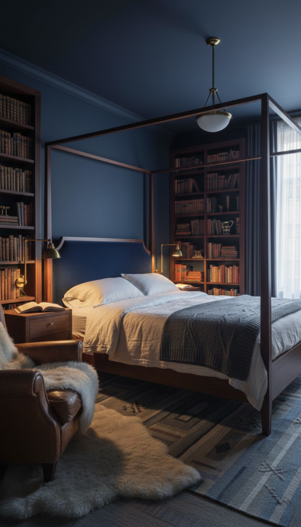 Sophisticated, dark, and moody. This style channels the historic libraries and cafes of the Left Bank. It leans into darker wood tones, perhaps a navy or deep green feature wall, and plenty of focused lighting for reading late into the night. It is a cozy, enveloping space perfect for introverts.