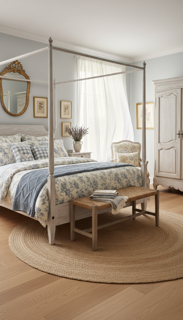 While not strictly “Parisian,” many Parisians yearn for their country homes in Provence, often bringing that style back to the city. This look is rustic, bright, and floral. It utilizes toile patterns, white-washed wood, and plenty of natural light. It feels fresh and airy, like a spring morning in the countryside.