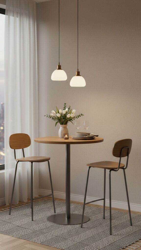- Add a small pendant light above the table to define the zone.