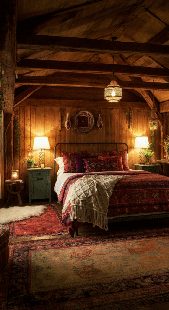Think of raw wood beams, distressed furniture, and soft, neutral tones. You can add comfort with oversized throw blankets, vintage-style lighting, and soft wool rugs. The key is to make the space inviting without overwhelming it with too many items.