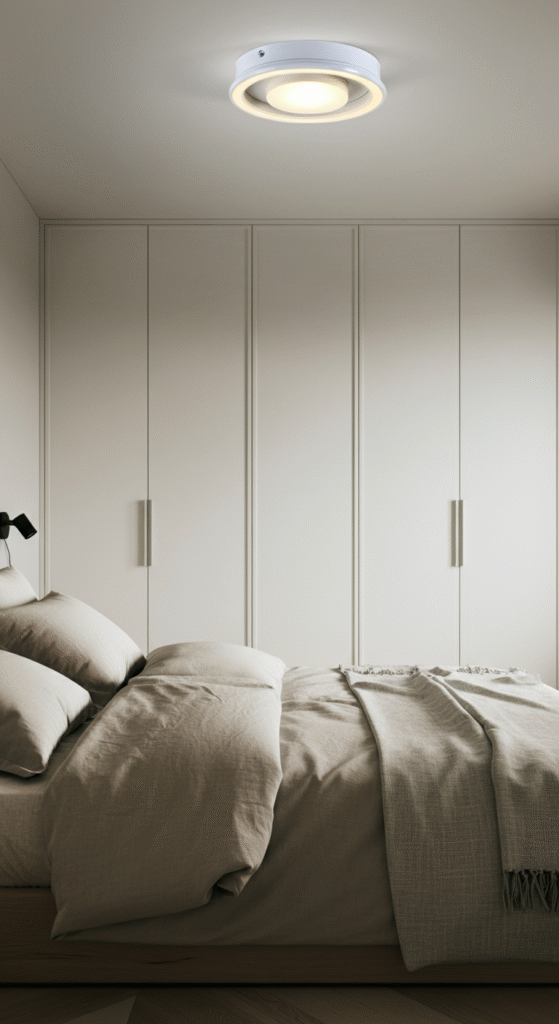 This idea works amazing for low ceilings, or for rooms where you want everything to blend. Flush mounts look almost invisible, but they still give enough light to brighten the entire bedroom evenly.