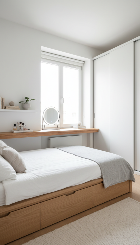 • Use a deep windowsill as a makeshift desk or vanity.