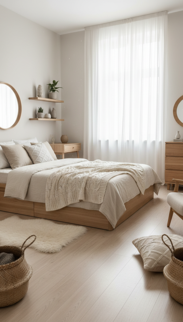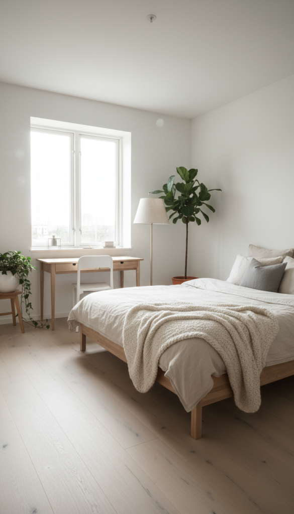 To create a Scandinavian-inspired bedroom, start with light, neutral colors like whites, grays, and soft pastels. Invest in natural wood furniture, keep decorations to a minimum, and incorporate plush textiles such as wool throws and cotton bedding. The result is a serene, clutter-free space that feels both inviting and restful.