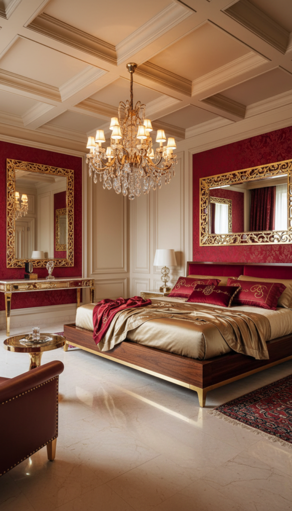 For an Italian bedroom, focus on high-quality materials, such as leather, marble, and silk. Opt for elegant yet simple furniture pieces with clean lines but luxurious details. Rich colors like deep reds, golds, and earth tones should dominate your space, paired with soft lighting to enhance the room’s sophisticated mood.