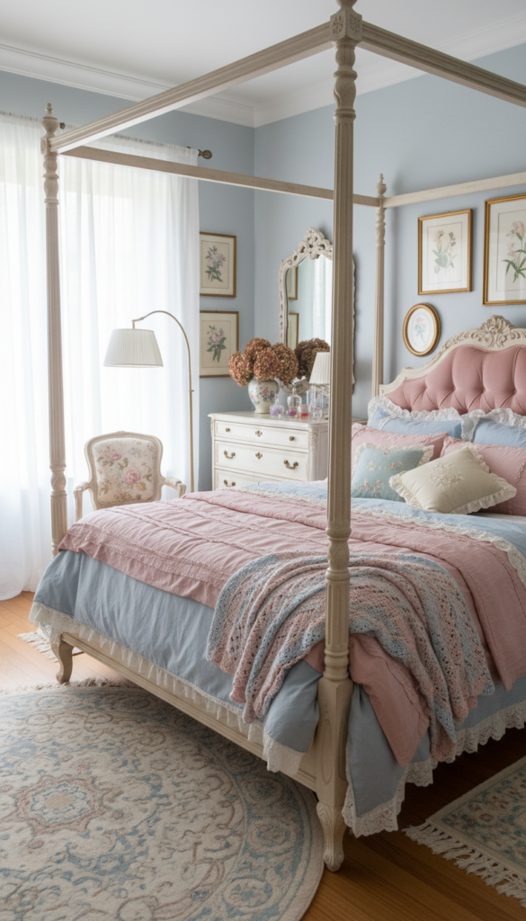 Creating a vintage pastel bedroom is about curating a space that feels soft, historic, and lived-in. You don’t need to do it all at once—start with a new set of ruffled bedding or a few thrifted frames and build from there.