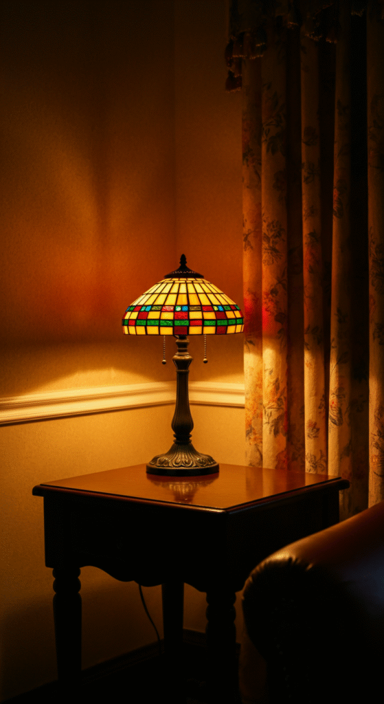 Tiffany lamps are iconic for their stained glass patterns — think dragonflies, florals, or geometric motifs in rich reds, blues, and greens. They fit beautifully in both vintage-inspired and eclectic interiors, casting a warm, colorful glow that changes the mood of an entire room.