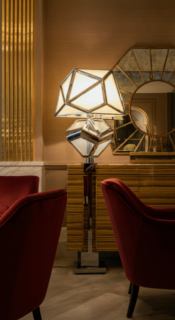 They pair beautifully with statement mirrors, marble-top tables, and plush fabrics like satin or suede. A single Art Deco lamp can turn your space from simple to show-stopping.