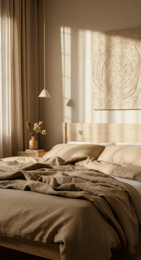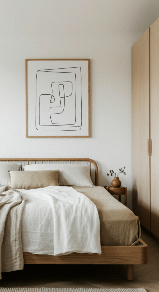 Here is the fun part. When you start adding Japandi wall décor, the whole room shifts. Even one simple wooden frame or a linen wall hanging can change your mood. That is why bedroom décor has become one of the most searched terms on Pinterest for slow-living lovers.