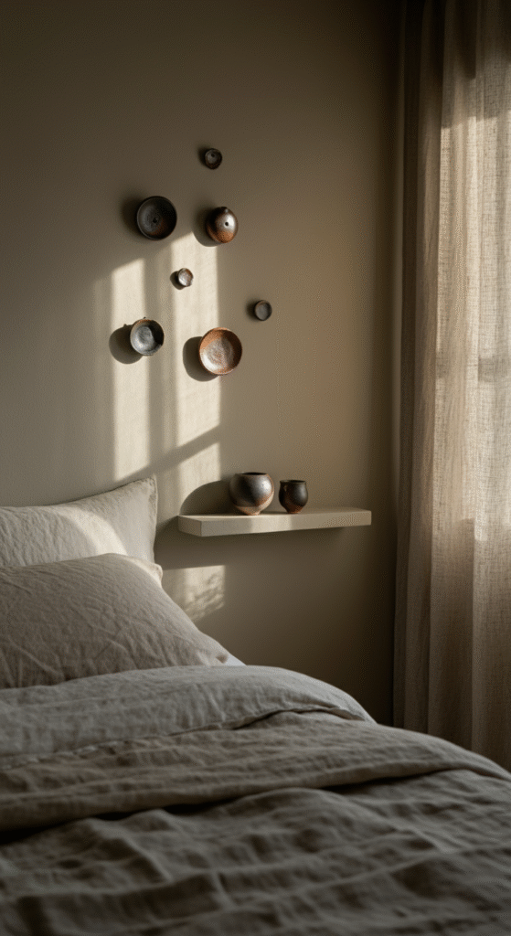 These pieces usually use linen, plaster, clay, or woven natural fibers. They give the room a calm personality without overwhelming the eye.