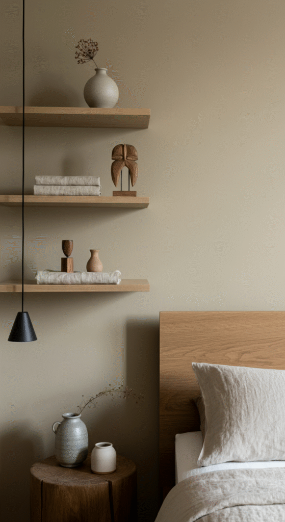 The myth is that floating shelves always look messy. But Japandi proves that shelves can feel calm when styled with intention.