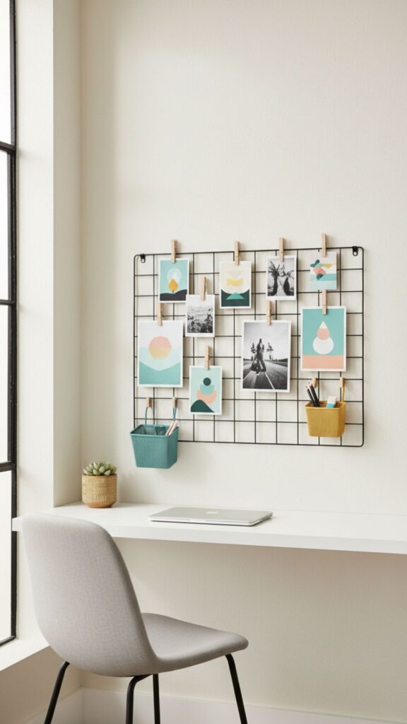 • Mount a wire grid panel above your desk.