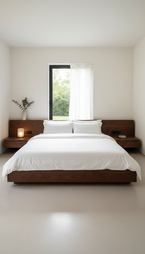 Wood is the anchor of any earth-toned aesthetic. Move away from painted finishes and opt for natural walnut or oak. A low-profile bed frame with clean lines keeps the visual weight of the room grounded. The dark, rich grain of walnut contrasts beautifully against lighter walls, offering a mid-century modern touch that feels timeless and high-end.
