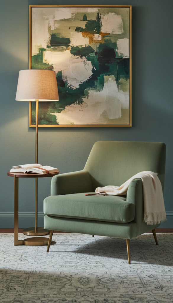 5. Sage Green Velvet Accents