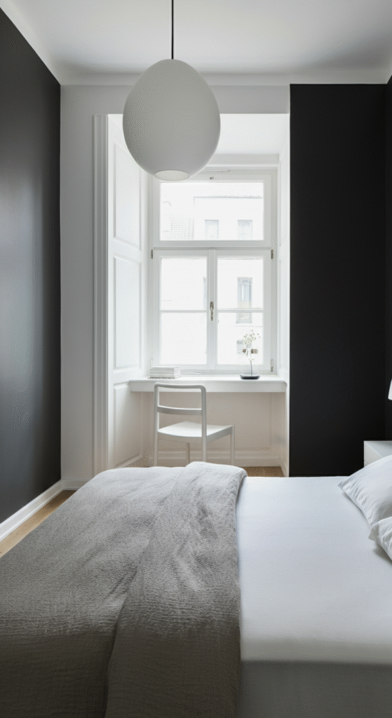 Interesting Fact: Black and white are often used in design for their ability to evoke clarity and elegance. The simplicity of the two colors makes them a timeless choice that works in nearly any bedroom.