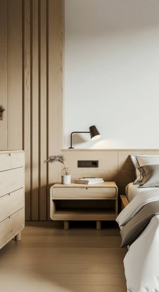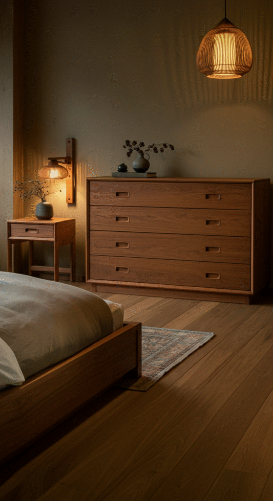 Opt for simple, low-profile furniture with clean lines and natural materials. Platform beds and minimalist nightstands work well in this style.