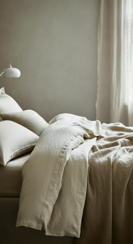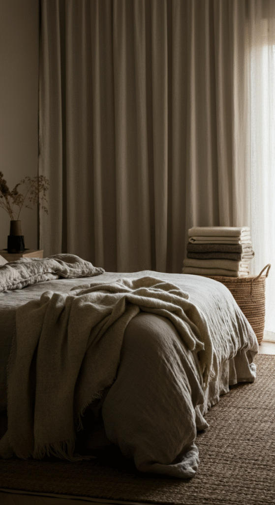 Linen, a popular fabric in both Japanese and Scandinavian homes, is known for its durability and breathability. It’s perfect for the bedroom because it helps regulate temperature, keeping you comfortable throughout the night.