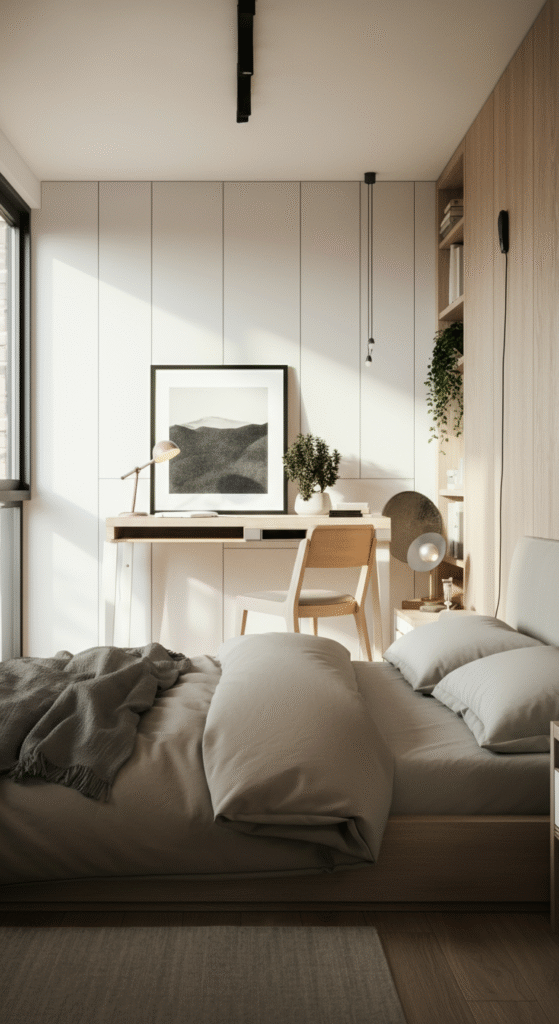 These muted hues evoke a sense of calm and clarity, making the space feel inviting and peaceful. Interestingly, studies show that colors like gray and beige are known to promote mental well-being and reduce stress levels, perfect for a bedroom environment.