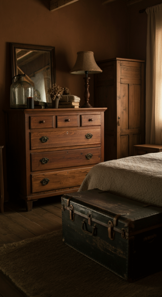 Your final touches matter a lot. Rustic accents bring that lived in charm that vintage lovers enjoy. They make the room feel honest, warm, and grounded.