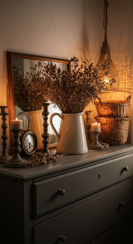 Vintage styling thrives when your decor actually feels like it has a past. You can go minimal or maximal, but the secret is in choosing items that look intentionally collected.