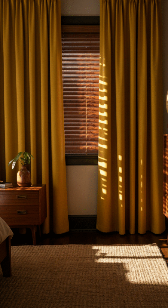 Yellow curtains have a unique ability to bring warmth, light, and character into a mid century bedroom without overpowering the space. From rich mustard linens to soft butter yellow sheers, each variation tells a different story while staying rooted in timeless design principles.