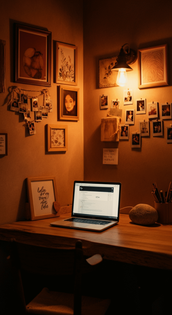 Choose art that speaks to you, whether it’s a vibrant abstract print, a minimalist line drawing, or an inspiring quote. It’s these personal touches that transform your boho desk from a functional workspace to an inspiring one.