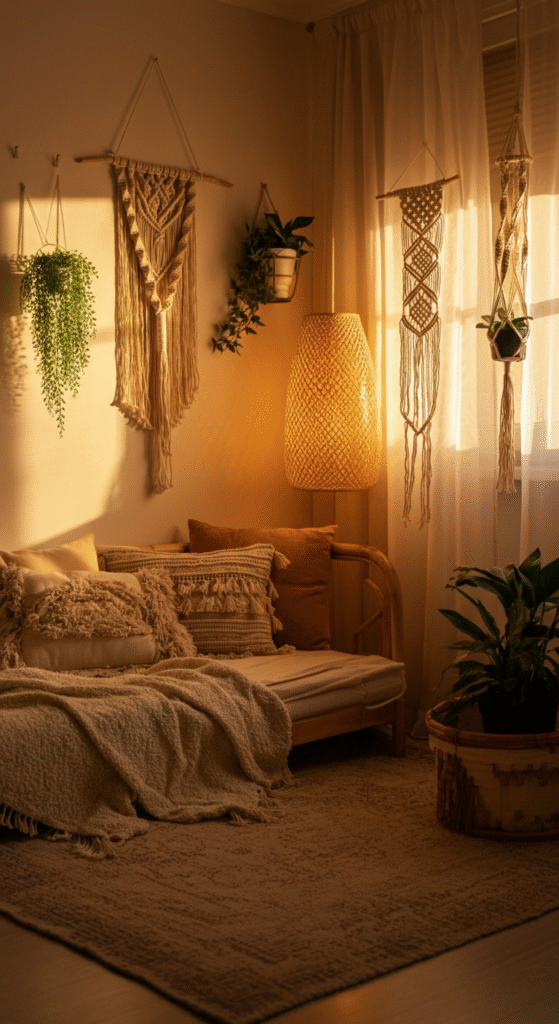 Macramé is a quintessential boho staple that adds an artistic and handcrafted feel to your decor. From wall hangings to plant holders, macramé can be incorporated in a variety of ways to add texture and charm.