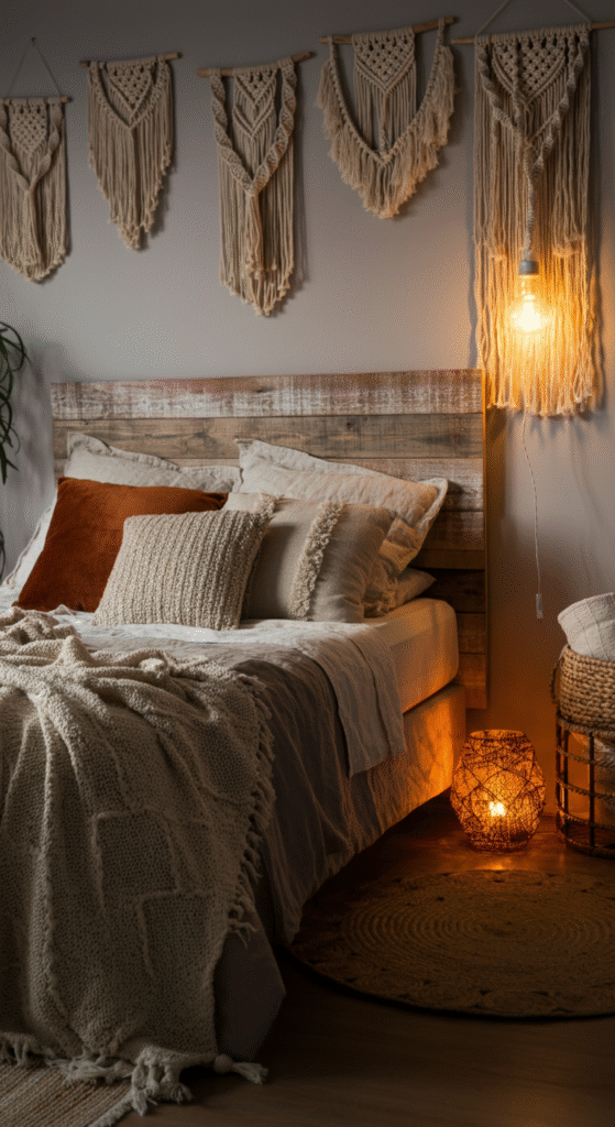 The Boho aesthetic is all about relaxed, inviting vibes and layered designs, making it the perfect choice for a small bedroom that needs warmth, personality, and comfort.