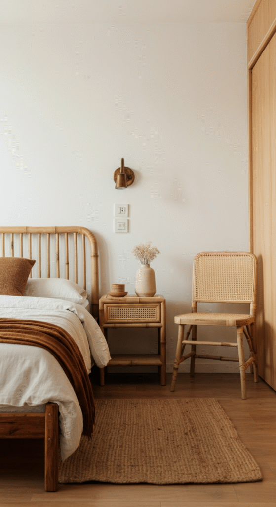 Look for a rattan bed frame or a woven rattan chair to complement your room’s decor. Add jute rugs or baskets to hold your blankets and throw pillows.