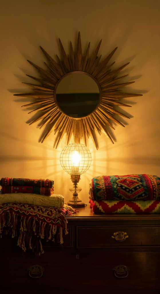 Interesting Fact: Sunburst mirrors were made popular in the mid-century modern era, but they’ve found a lasting place in boho decor because they tie together vintage charm with eclectic flair.