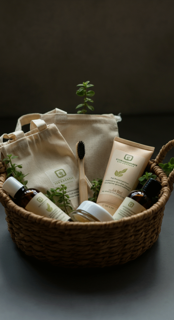 Choose organic, reusable, or upcycled products such as eco-friendly skincare, sustainable home goods, and items made from natural materials like cotton, bamboo, and wood.