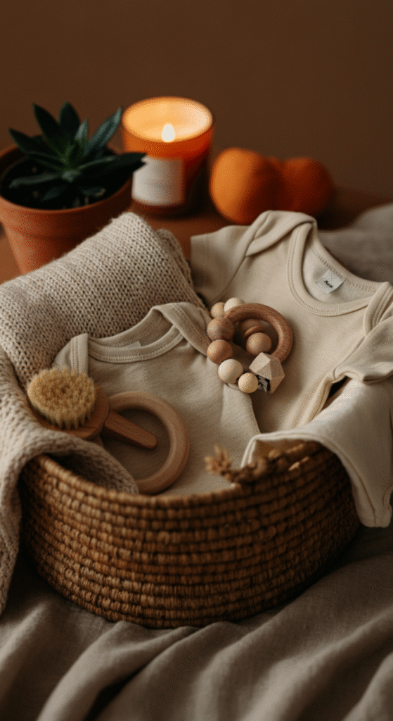 When it comes to gifting for a new little one, a Boho baby basket combines practical items with that signature warm, natural aesthetic. This basket is perfect for parents who appreciate the Boho style or those who just want to give something unique and thoughtful.