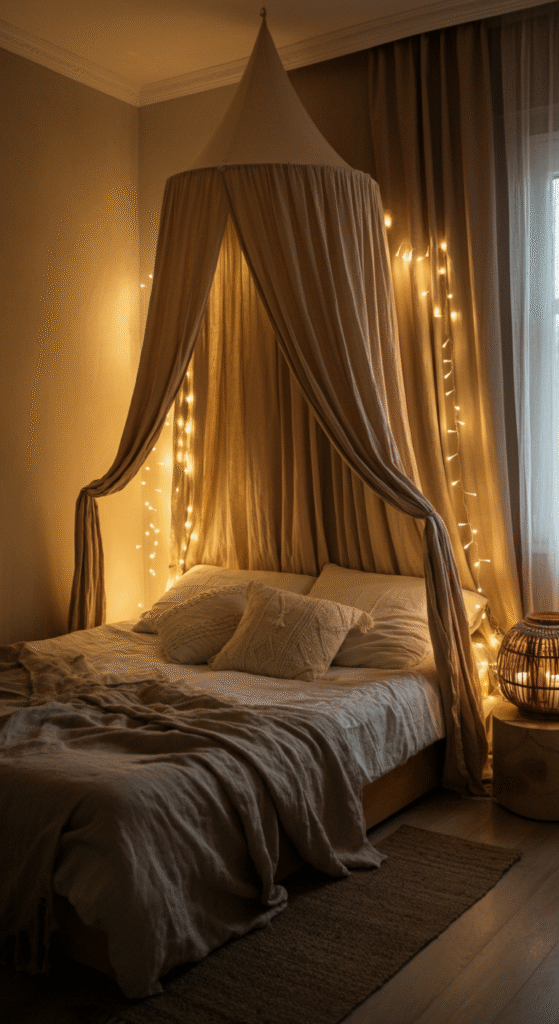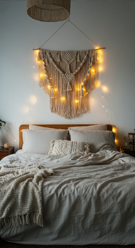 Imagine waking up to soft linens, macramé garlands, and a warm glow from woven lanterns instead of harsh string lights. This isn’t just another “decor inspo” post — it’s a guide to turning your bedroom into a festive escape where style meets soul.