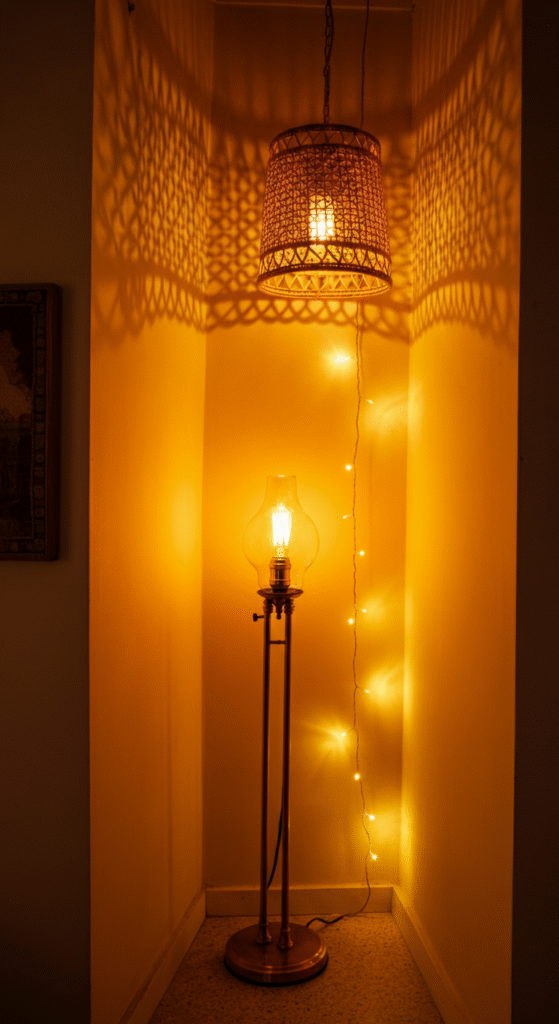 Lighting plays a pivotal role in setting the mood of any space, and a boho nook is no exception. For a warm, inviting ambiance, opt for statement lighting fixtures like a rattan pendant lamp, a vintage floor lamp, or fairy lights draped over furniture.