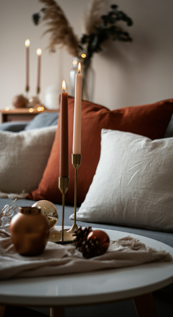 Interesting fact: Our brains actually associate layered textures with warmth — so even in a minimalist apartment, these tactile layers make your space feel instantly cozy and festive.