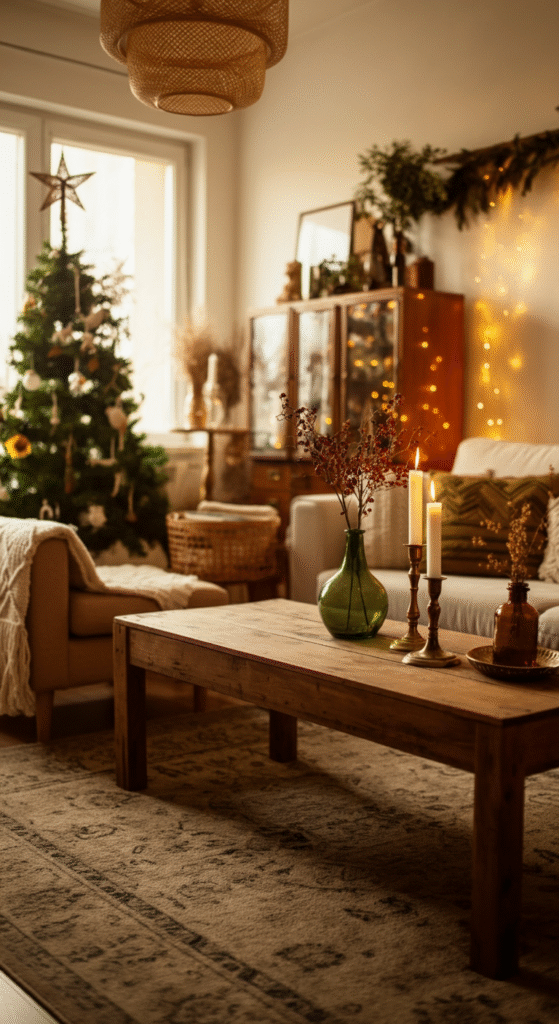 Let’s dive into 9 inspiring Boho living room Christmas décor ideas that’ll transform your apartment into a cozy, soulful holiday sanctuary.