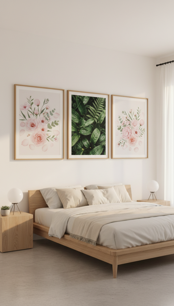 One of the simplest yet effective ways to incorporate green and pink into your bedroom is through wall art. Choose framed prints that feature greenery, florals, or abstract designs in shades of green and pink. Wall art can set the tone of your room while also reflecting your personal taste.