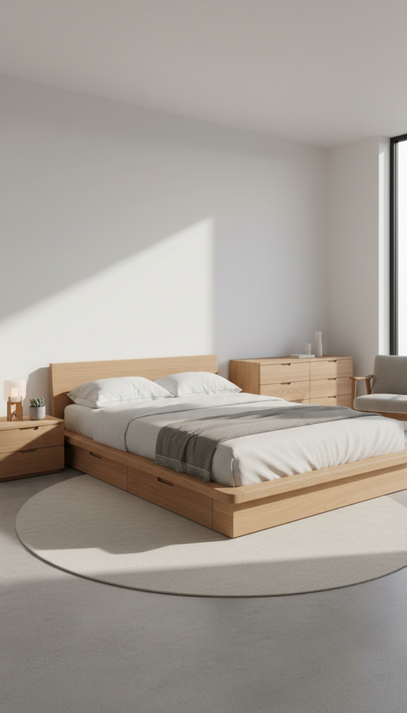 Minimalism isn’t just about what you remove, but also what you keep. Choose pieces that are both functional and beautiful. The bed, for example, should be the focal point, but instead of a bulky frame, look for sleek, low-profile designs. A simple, elegant nightstand, a storage-friendly dresser, and a comfortable chair are all you need to complete the room without overwhelming the space.