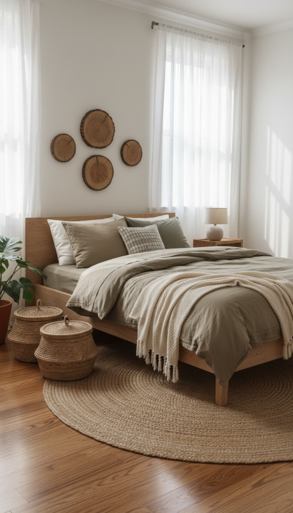 Incorporating natural materials like wood, stone, and linen brings warmth and texture to your minimalist space. These materials can create a sense of connection to nature while keeping the room grounded. A wooden bed frame, linen bedding, and woven baskets for storage can add subtle yet effective design elements to your bedroom.