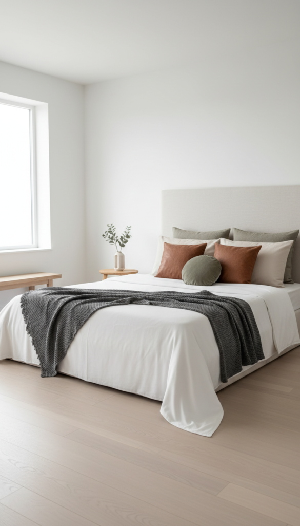 A key component of any minimalist bedroom is bedding that is both stylish and functional. Choose bedding with simple patterns or solid colors. Avoid over-layering with too many pillows or throws, as this can create unnecessary visual clutter. Stick to a couple of neutral-toned pillows and a soft, comfortable duvet for a polished yet relaxed look.