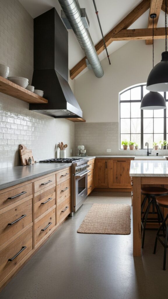Farmhouse kitchens are practical above all else. Deep drawers equipped with a pegboard system allow you to store heavy stoneware plates and bowls at waist height, rather than lifting them into upper cabinets. It’s ergonomic, smart, and looks custom-made when you open the drawer.