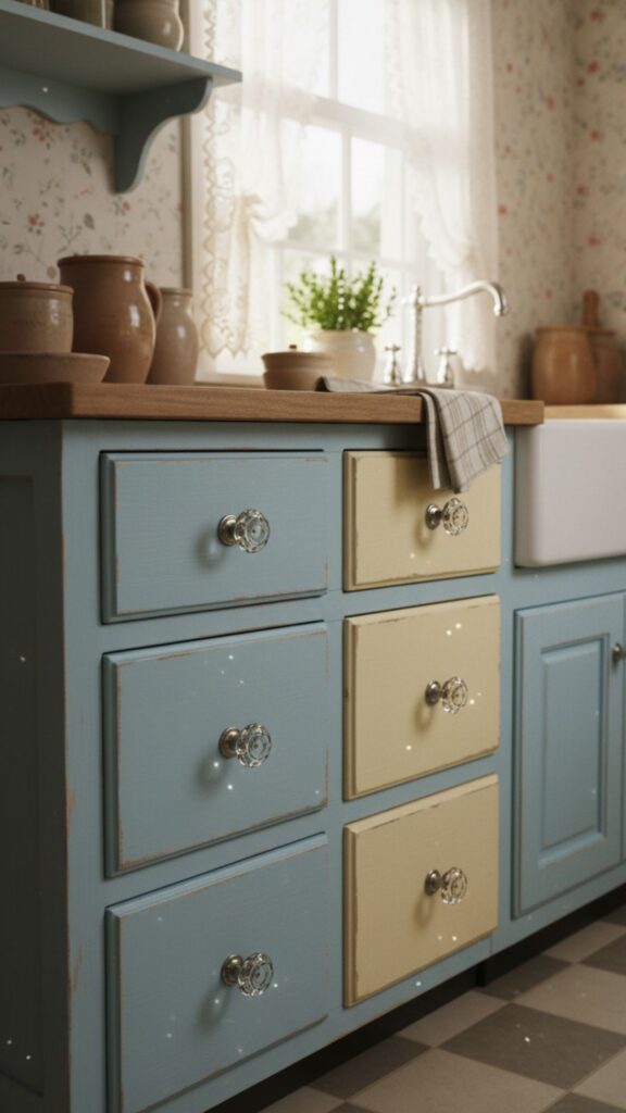 - Look for “depression glass” style knobs for an authentic vintage feel.