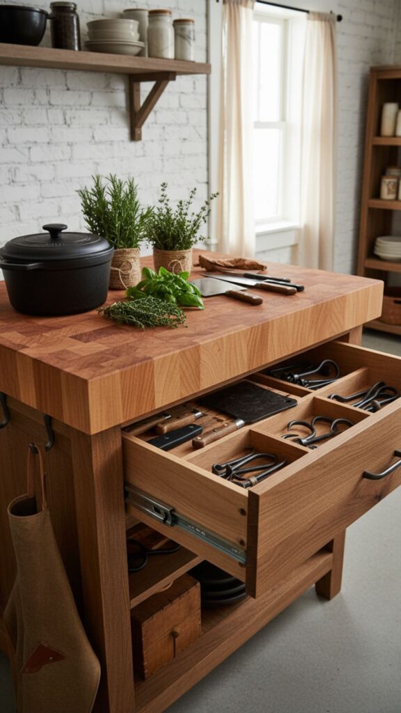 9. Butcher Block Top Drawers