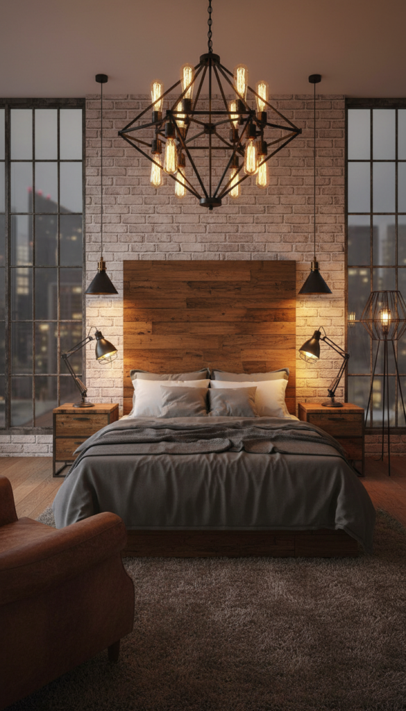 What lighting works best in an industrial bedroom?