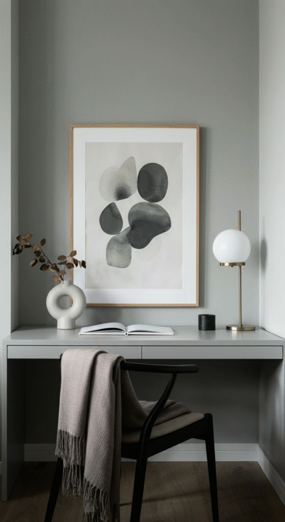 The secret is not quantity but presence. Each object should feel like it belongs. When your workspace has only a few thoughtful decor touches, the room feels light and soothing.