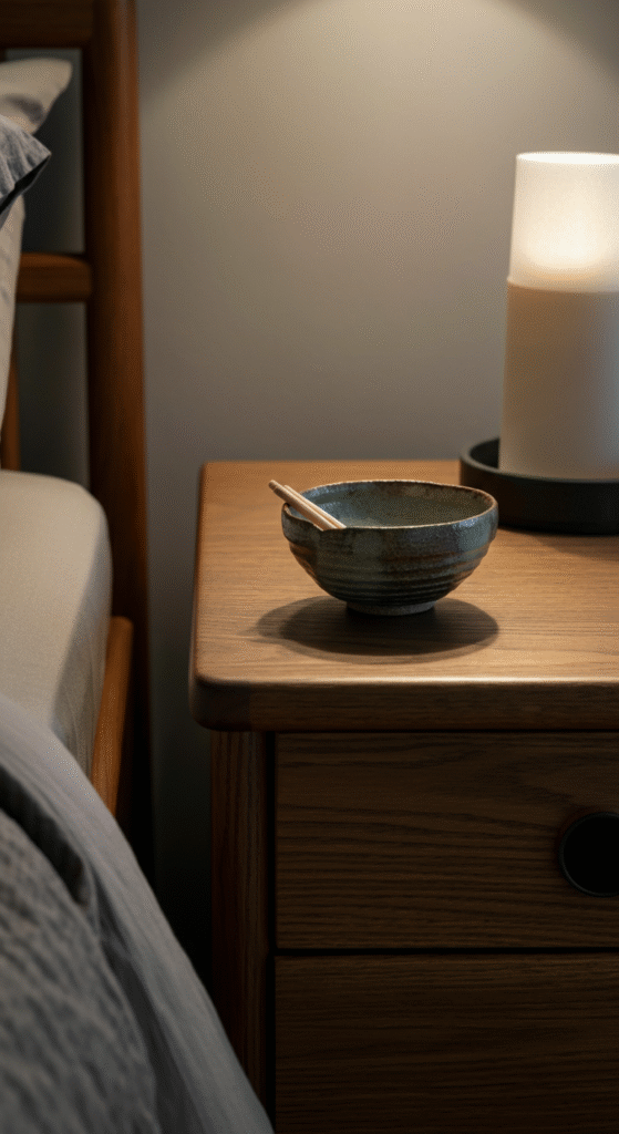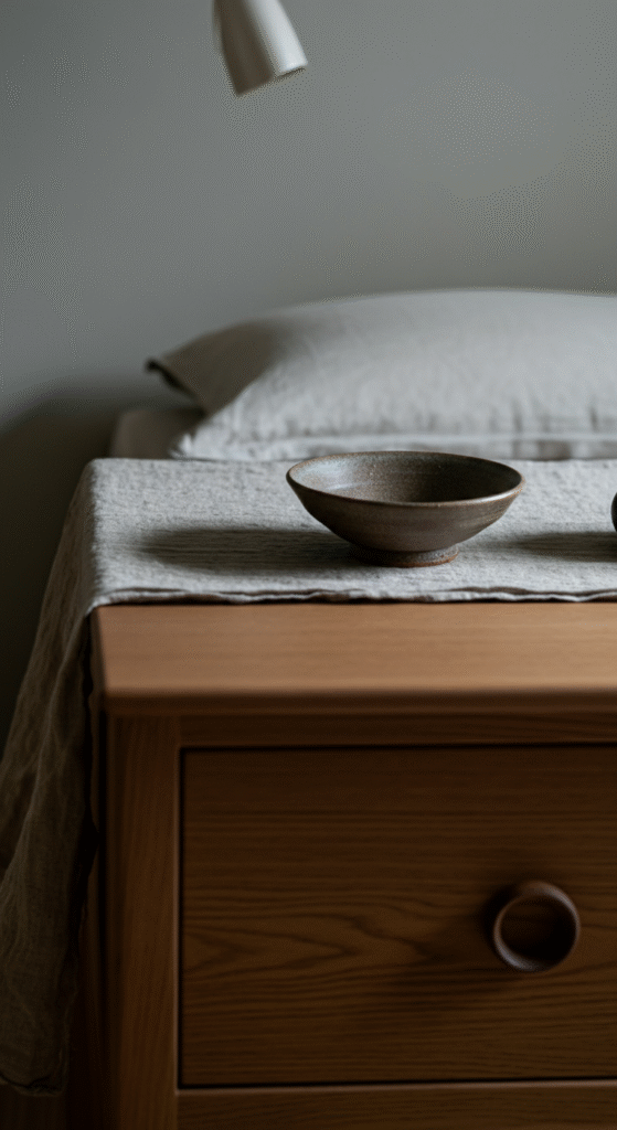Styling a Japandi bedroom table is not about filling the space. It is about choosing pieces that slow your mind down when you look at them.
