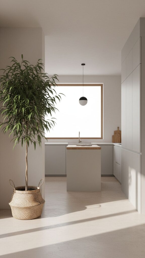 Plants are instant mood boosters. Placing a substantial potted plant, like an Olive or Ficus tree, at the kitchen entrance creates a literal breath of fresh air and connects the indoors with the outdoors.