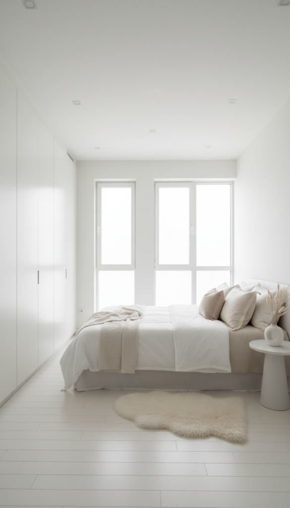 Pick one color (usually white, cream, or a very light grey) and apply it to everything—walls, bedding, and even painted floorboards. Add depth through texture rather than color contrast, using velvet cushions or a ribbed duvet cover.