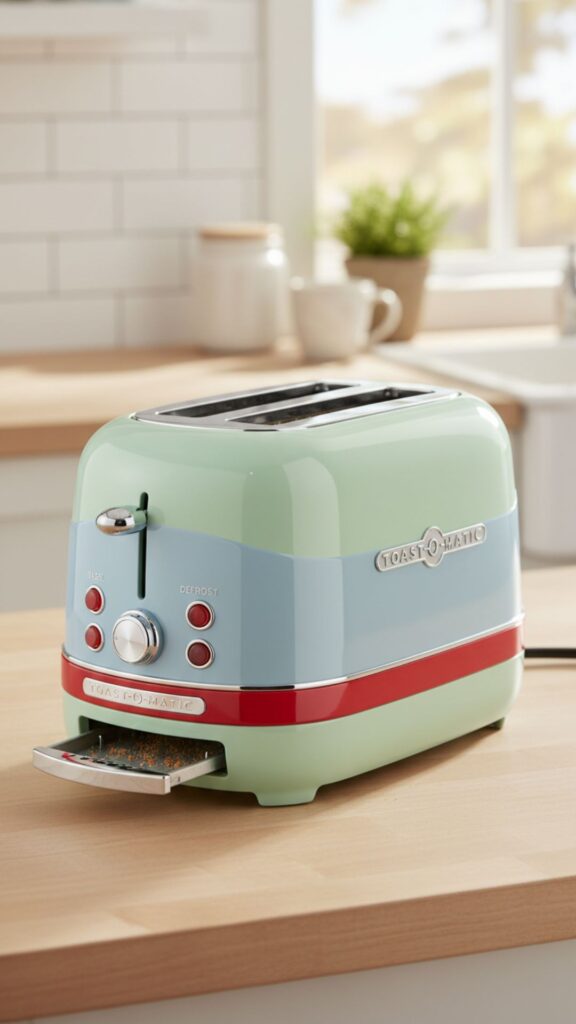 Nothing anchors a mid-century kitchen quite like a statement appliance on the counter. A retro-style toaster, often found in iconic shades like seafoam green, buttercup yellow, or cherry red, instantly sets the tone. These appliances mimic the soft curves and chrome detailing of 1950s cars, turning a mundane morning ritual into a stylish event.