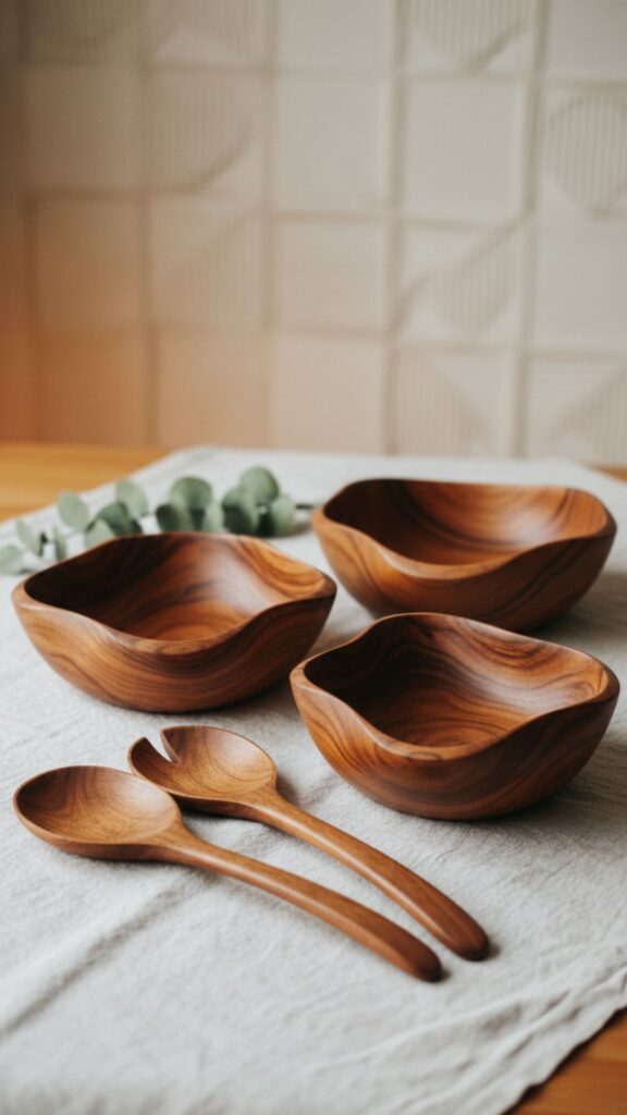 Natural materials were a huge component of mid-century design, balancing out the chrome and plastic. Teak wood, with its rich, warm grain, was the material of choice for salad bowls and serving platters. A beautiful teak bowl is a timeless centerpiece that serves a practical purpose for family dinners.