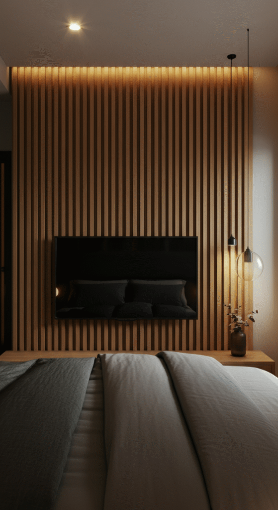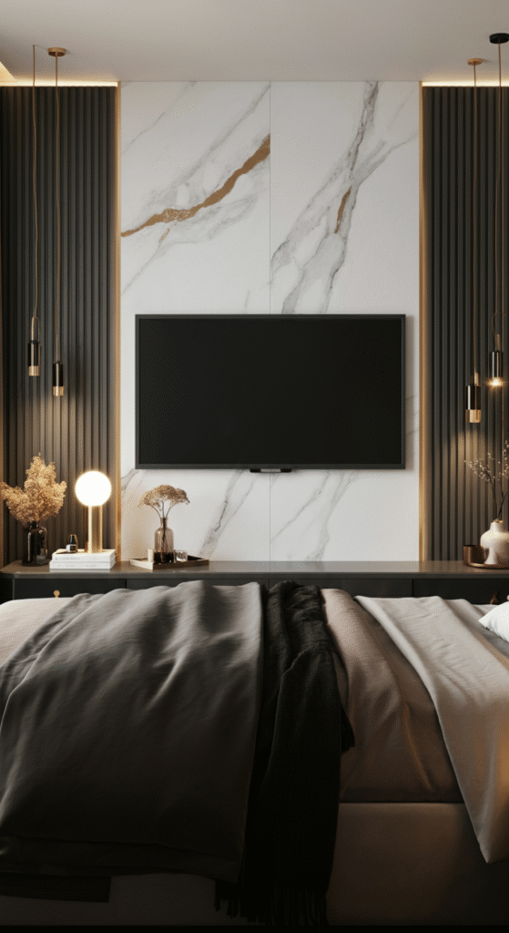 A modern bedroom TV wall should feel clean, simple, and stylish without demanding too much effort. When the design blends well with your bedroom theme, the TV becomes a natural part of the whole space. Whether you love a warm wooden backdrop, a luxurious stone finish, a floating console, or even a hidden TV setup, each idea can transform your bedroom into a sleek, comfortable retreat.